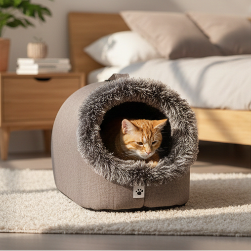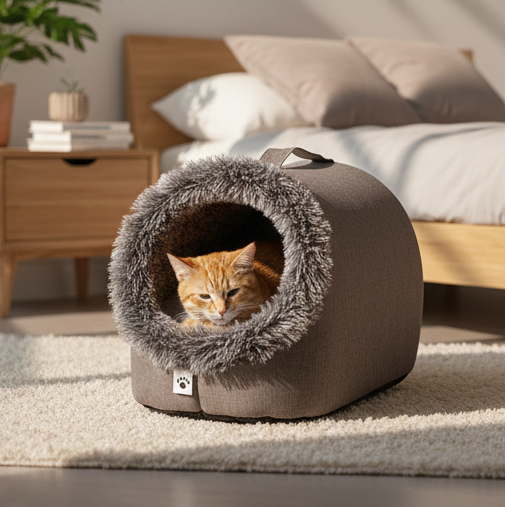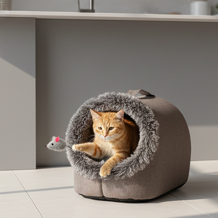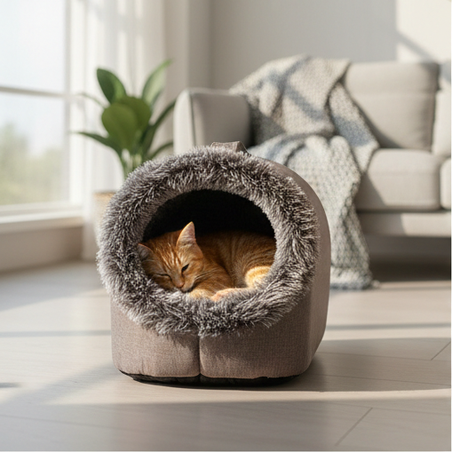 This self-warming pet bed combines thoughtful design with practical functionality for small to medium-sized pets. Available in M (40×30×28cm, up to 5kg) and L (50×40×34cm, up to 10kg) configurations, it features a dual-material construction of soft coral velvet and resilient PP cotton that naturally retains body heat. The enclosed cave design provides thermal insulation and a sense of security, making it an ideal choice for cats and small dogs seeking a dedicated resting space during colder months.